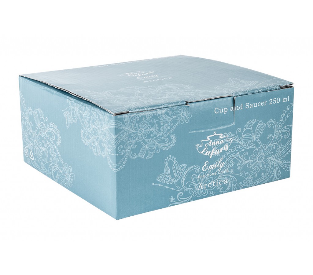 Чашка с блюдцем Арктика Anna Lafarg Emily в подарочной упаковке. Объем: 0.25л. Многофункциональная и современная форма чашки придется по вкусу всем поклонникам лаконичности. Изделия декорированы тонким платиновым кантом, несмотря на это их можно использовать в микроволновой печи и мыть в посудомоечной машине.