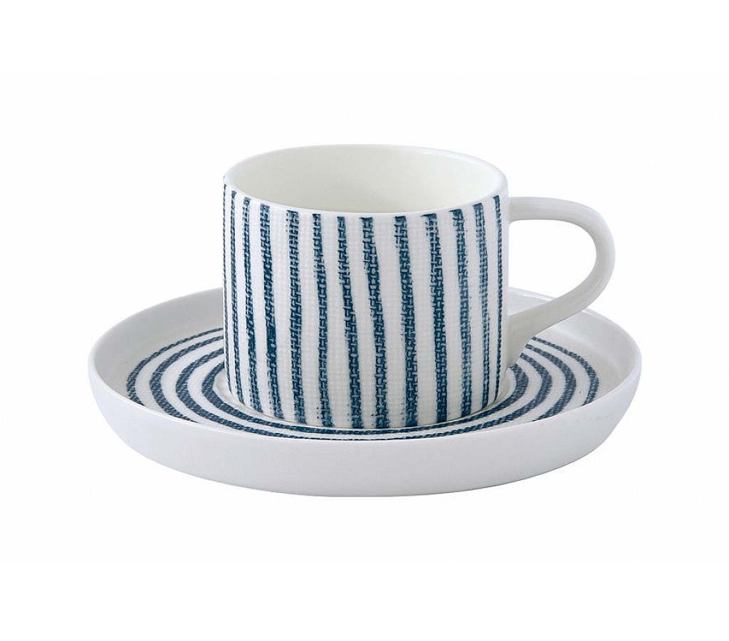 Чашка с блюдцем (белый с синими полосками) Бриз Easy Life (R2S) без индивидуальной упаковки. Размер: 0.12л.