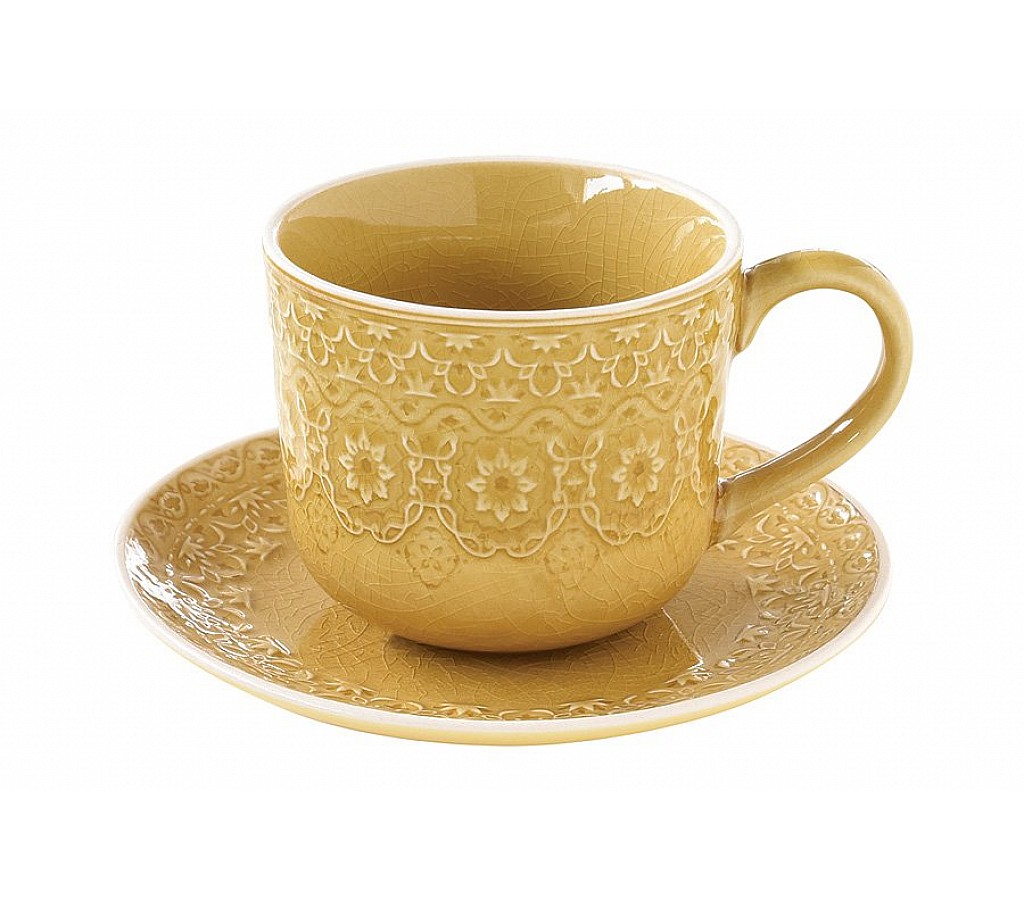 Чашка с блюдцем (жёлтая) Ambiente Easy Life R2S без индивидуальной упаковки, объем 0.3л.