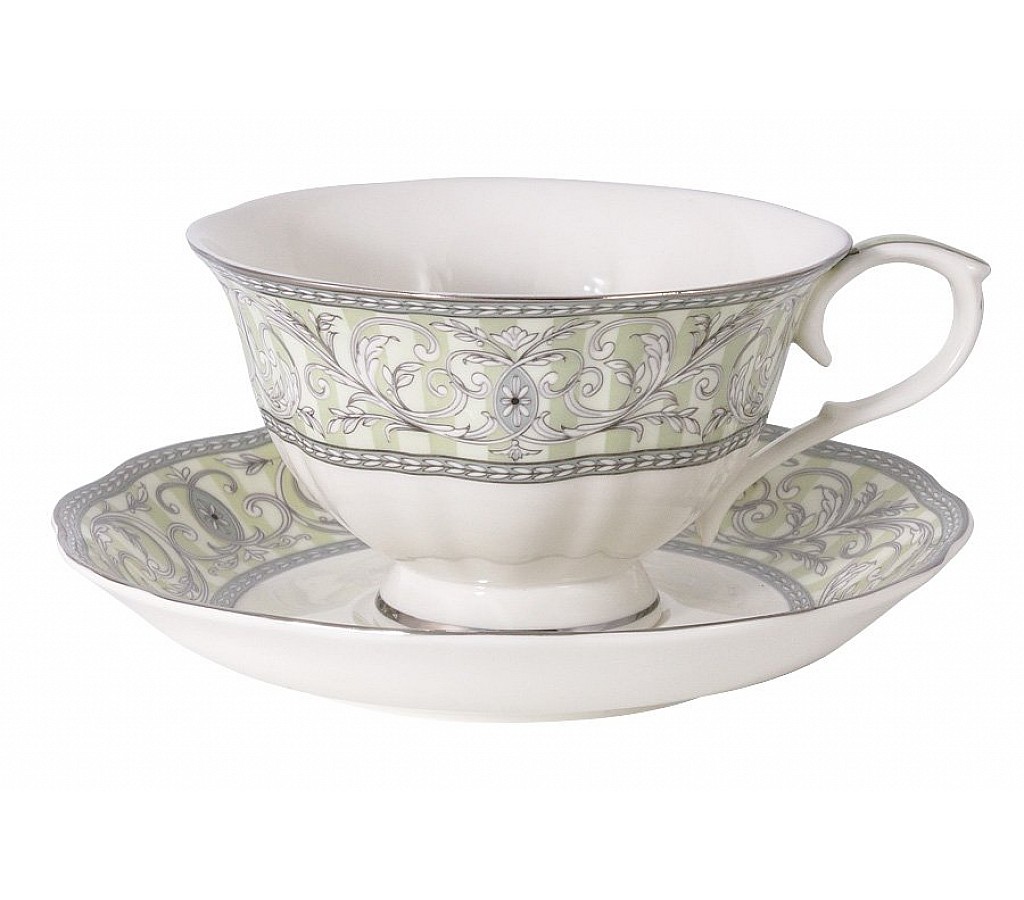 Чашка с блюдцем Жозефина Colombo выполнена из белоснежного костяного фарфора и декорирована нежным зеленым рисунком с платиновой отделкой. Объем чашки: 0.25л. Чайная пара упакована в подарочную коробку и будет хорошим подарком для родных и друзей. Рекомендуется мыть руками или в посудомоечной машине на щадящем режиме.