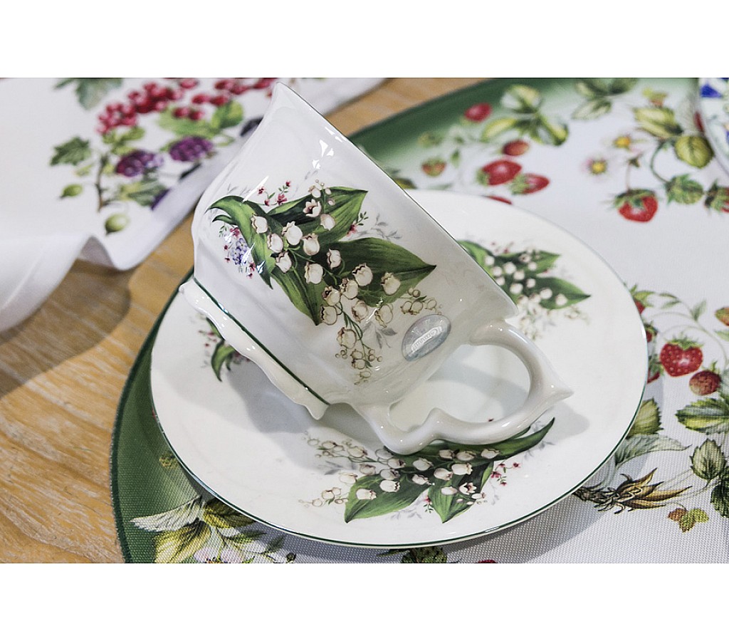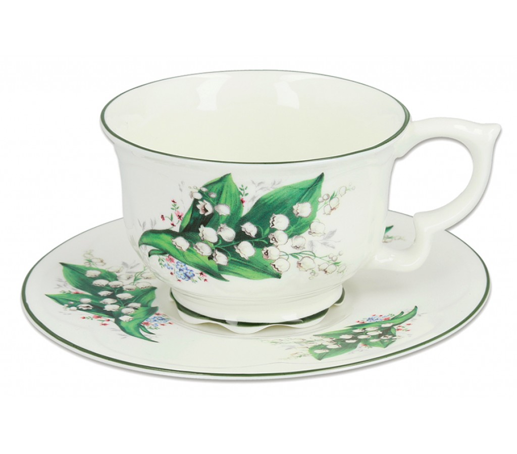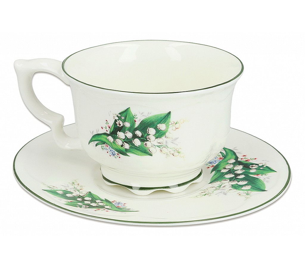 Чашка с блюдцем Ландыш Carmani 340 мл. Подарочная упаковка. Мыть мягкими моющими средствами. Можно использовать в СВЧ и в посудомоечной машине.