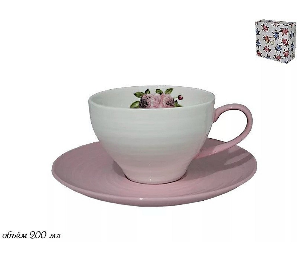 Чашка с блюдцем Lenardi Акварель розовая 200 мл. Можно использовать в посудомоечной машине и в микроволновой печи. Подарочная коробка.