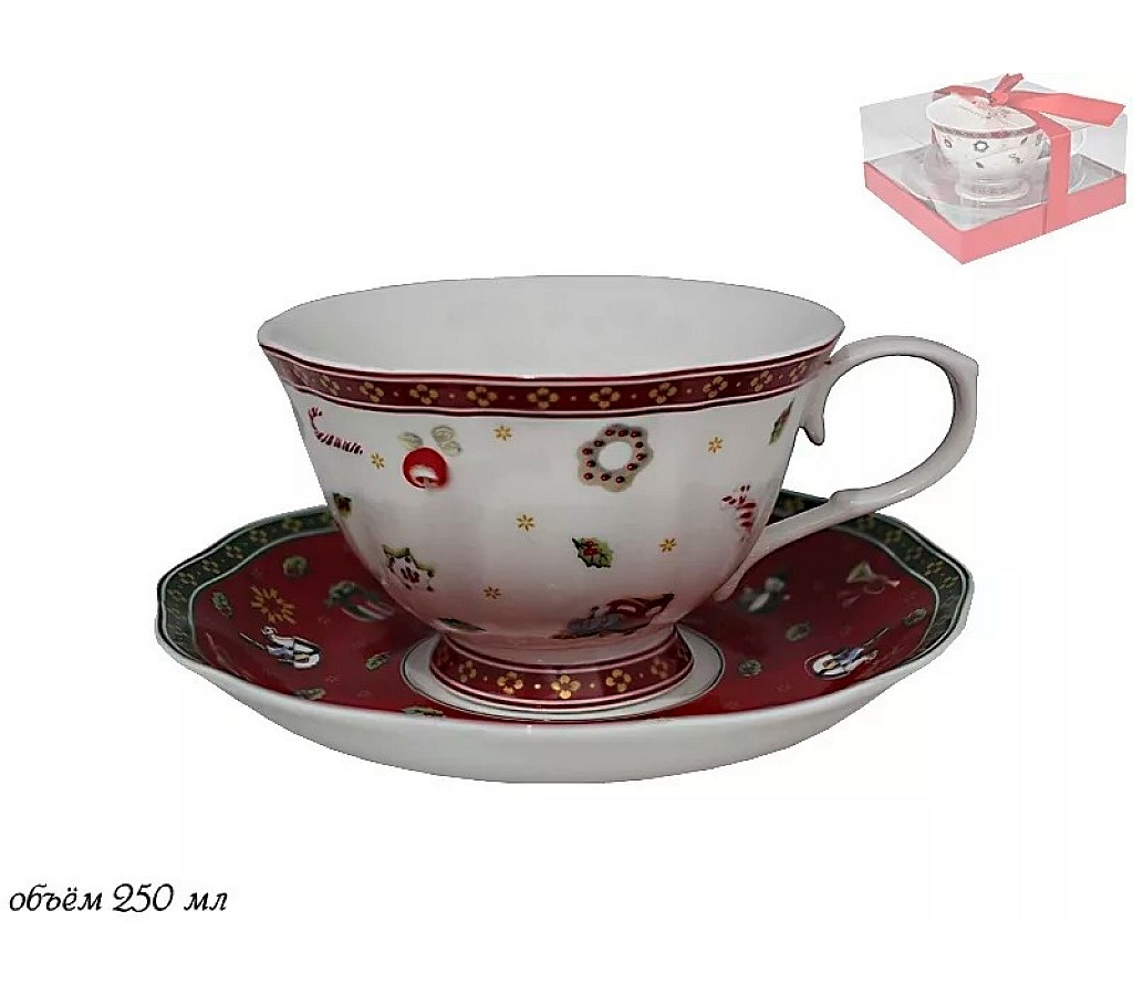 Чашка с блюдцем Новогодний Lenardi объемом 250 мл. Можно мыть в посудомоечной машине и использовать в микроволновой печи. Упакована в подарочную коробку.