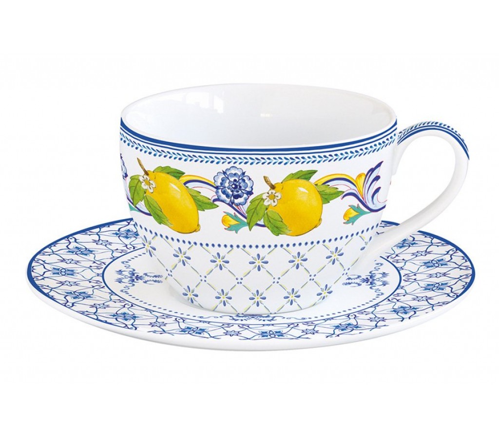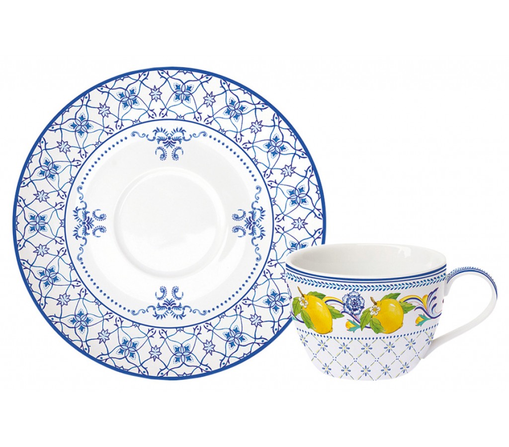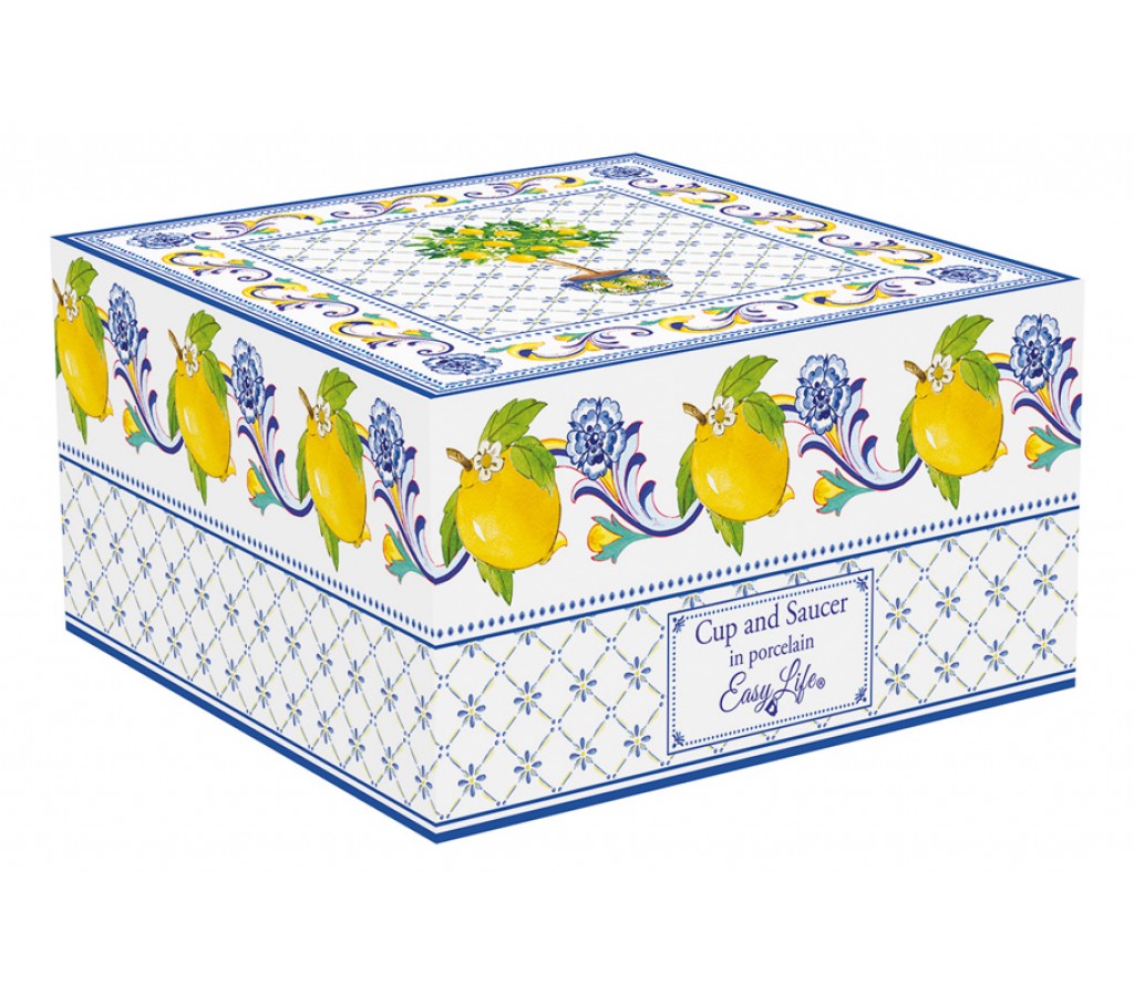 Чашка с блюдцем Positano Easy Life объемом 0,24 литра. Мыть теплой водой. Можно использовать в СВЧ и посудомоечной машине. Подарочная коробка.