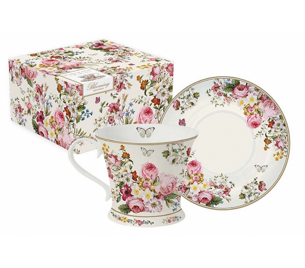 | Чашка с блюдцем R2S Цветочный карнавал, светлая | |