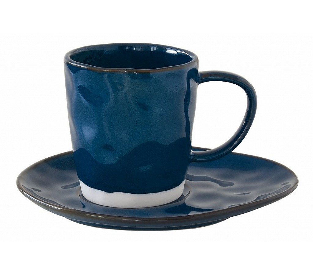 Чашка объемом 250 мл и блюдце «Interiors» от итальянского производителя посуды Easy Life R2S (Изи Лайф) изготовлены из высококачественного фарфора, который покрыт специальной глазурью темно-синего цвета, благодаря чему посуда становится очень прочной. Глянцевая однотонная чашка декорирована кантом, пущенным по нижнему краю. В сочетании с ассиметричной формой блюдца эта чайная пара станет прекрасным украшением любой сервировки.