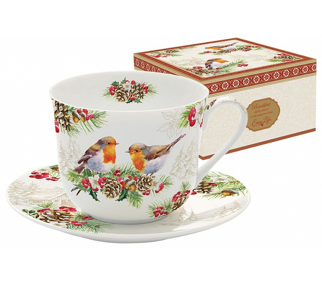 Чашка с блюдцем Снегири в подарочной упаковке 0,4 л