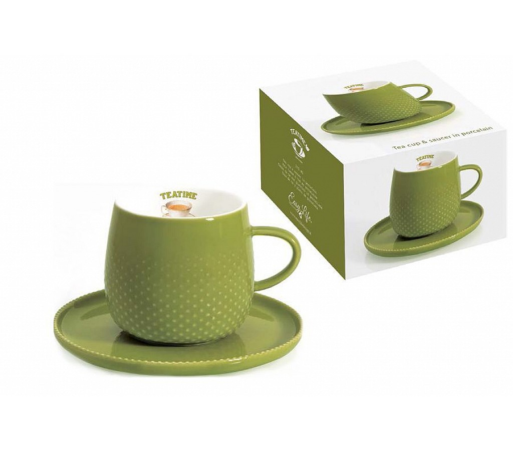 | Чашка с блюдцем тёмно-зелёная Капли дождя R2S | |