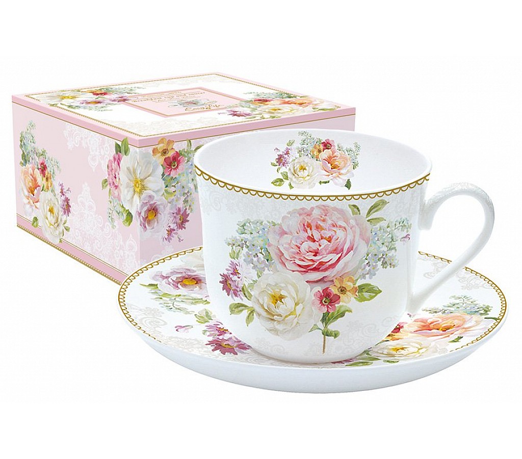 Чашка с блюдцем Цветочная романтика 0.4л Подарочная упаковка
