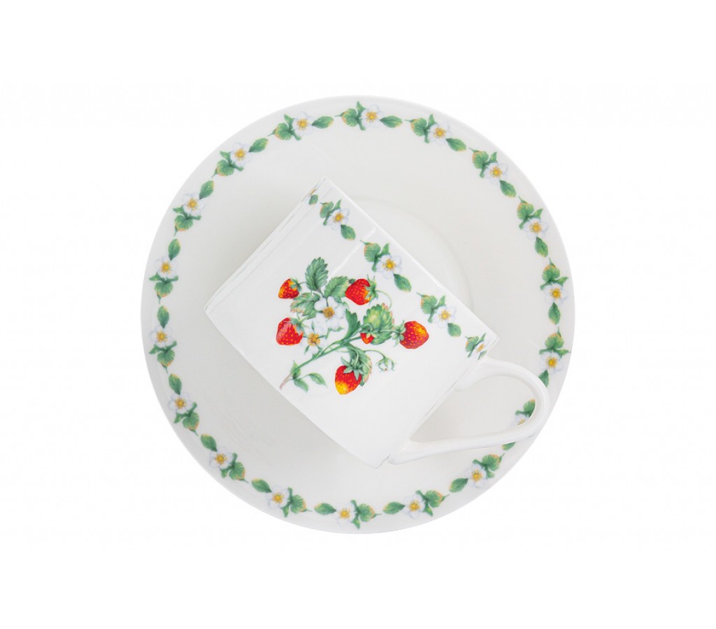 Чашка с блюдцем Земляничная поляна Anna Lafarg Emily объемом 0,22 литра. Мыть тёплой водой с применением жидких моющих средств и в посудомоечной машине. Можно использовать в СВЧ.