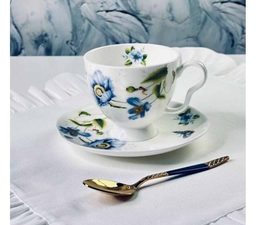 Чайный набор Flowers Lenardi синий цветок на 6 персон 12 предметов