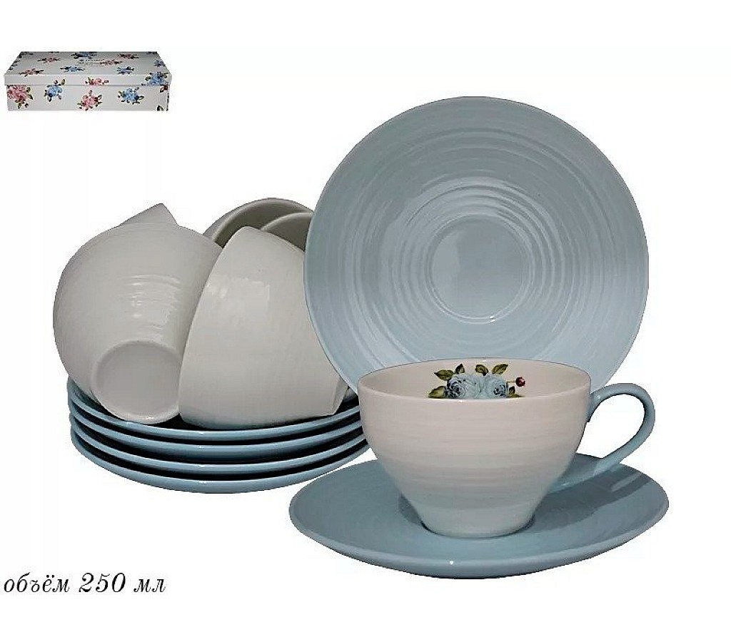 Чайный набор Lenardi Акварель голубая на 6 персон 12 предметов. Можно использовать в посудомоечной машине и в микроволновой печи. Подарочная коробка.