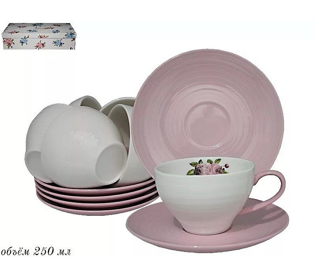 Чайный набор Lenardi Акварель розовая на 6 персон 12 предметов. Можно использовать в посудомоечной машине и в микроволновой печи. Подарочная коробка.