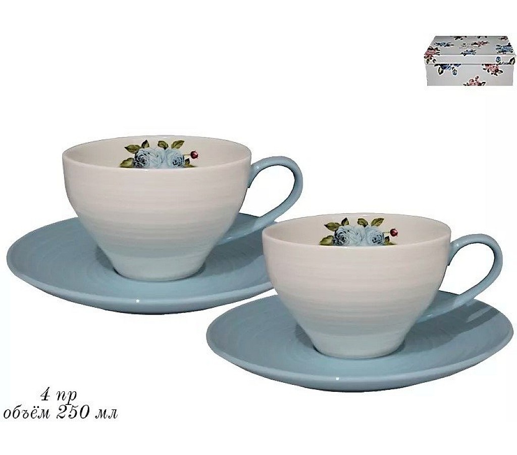 Чайный набор Lenardi Акварель розовая на 2 персоны 4 предмета. Можно использовать в посудомоечной машине и в микроволновой печи. Подарочная коробка.