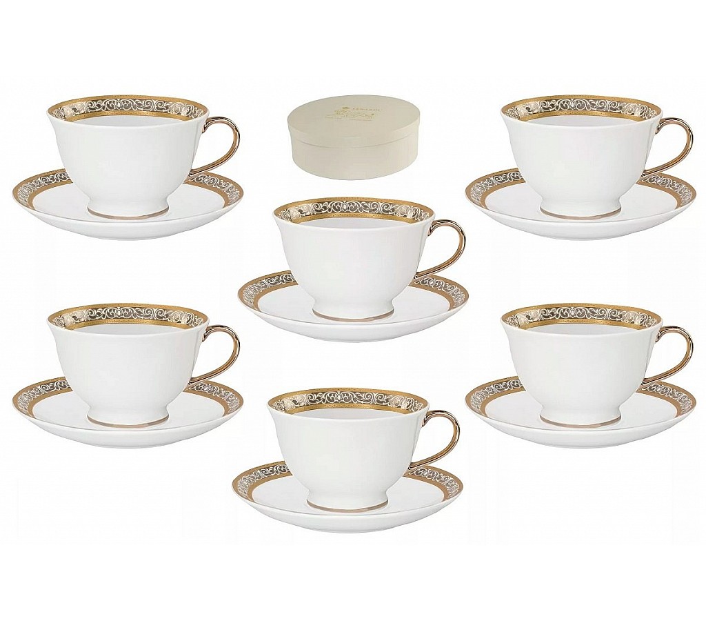 Чайный набор Lenardi Арабеска на 6 персон 12 предметов. Не рекомендуется мыть в посудомоечной машине и использовать в микроволновой печи. Подарочная коробка.