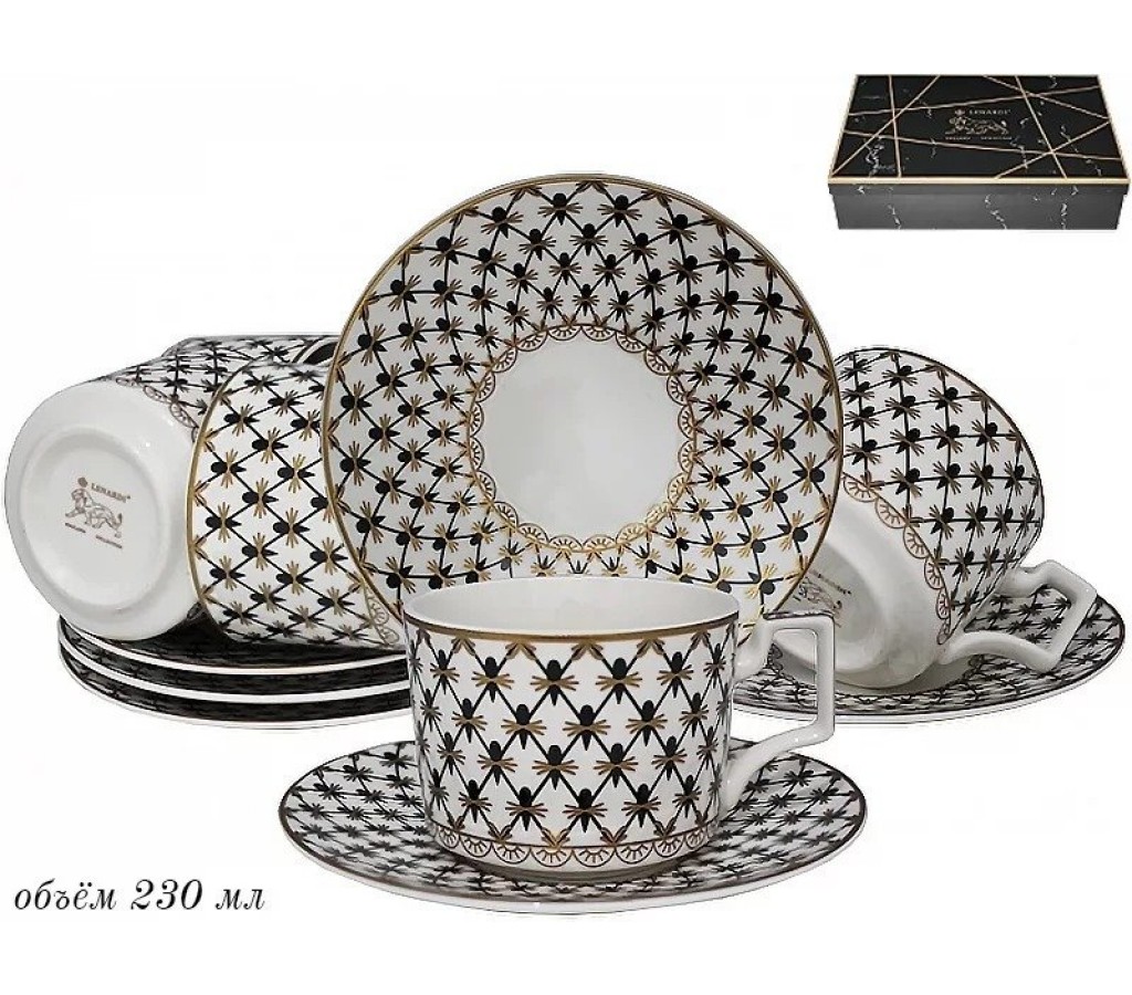 Чайный набор Lenardi Черная сетка на 6 персон 12 предметов. Не рекомендуется мыть в посудомоечной машине и использовать в микроволновой печи. Подарочная коробка.