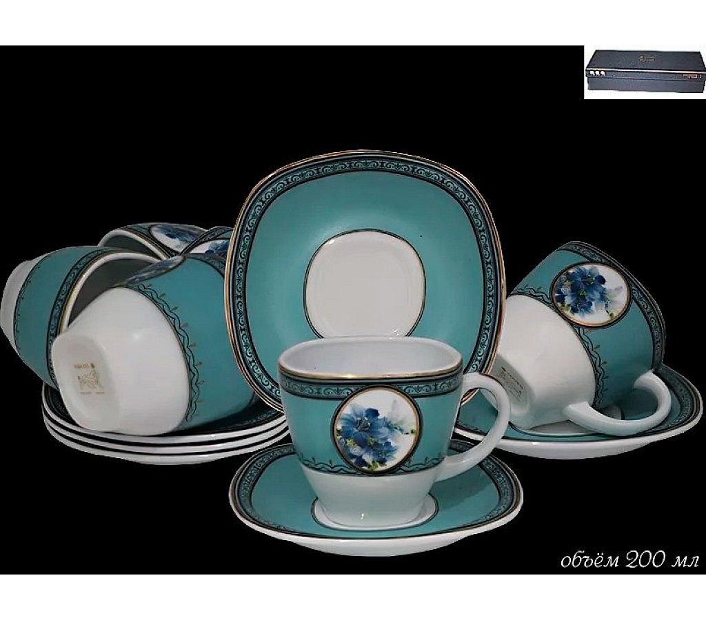 Чайный набор Lenardi Лазурь на 6 персон 12 предметов. Упакован в подарочную коробку. Можно использовать в посудомоечной машине.