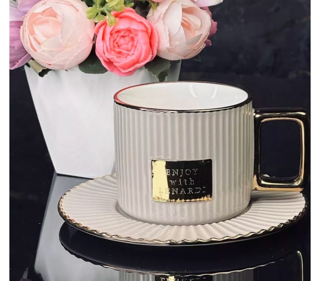 Чайный набор Lenardi Линии бежевый 250 мл. Не рекомендуется мыть в посудомоечной машине и использовать в микроволновой печи. Подарочная коробка.