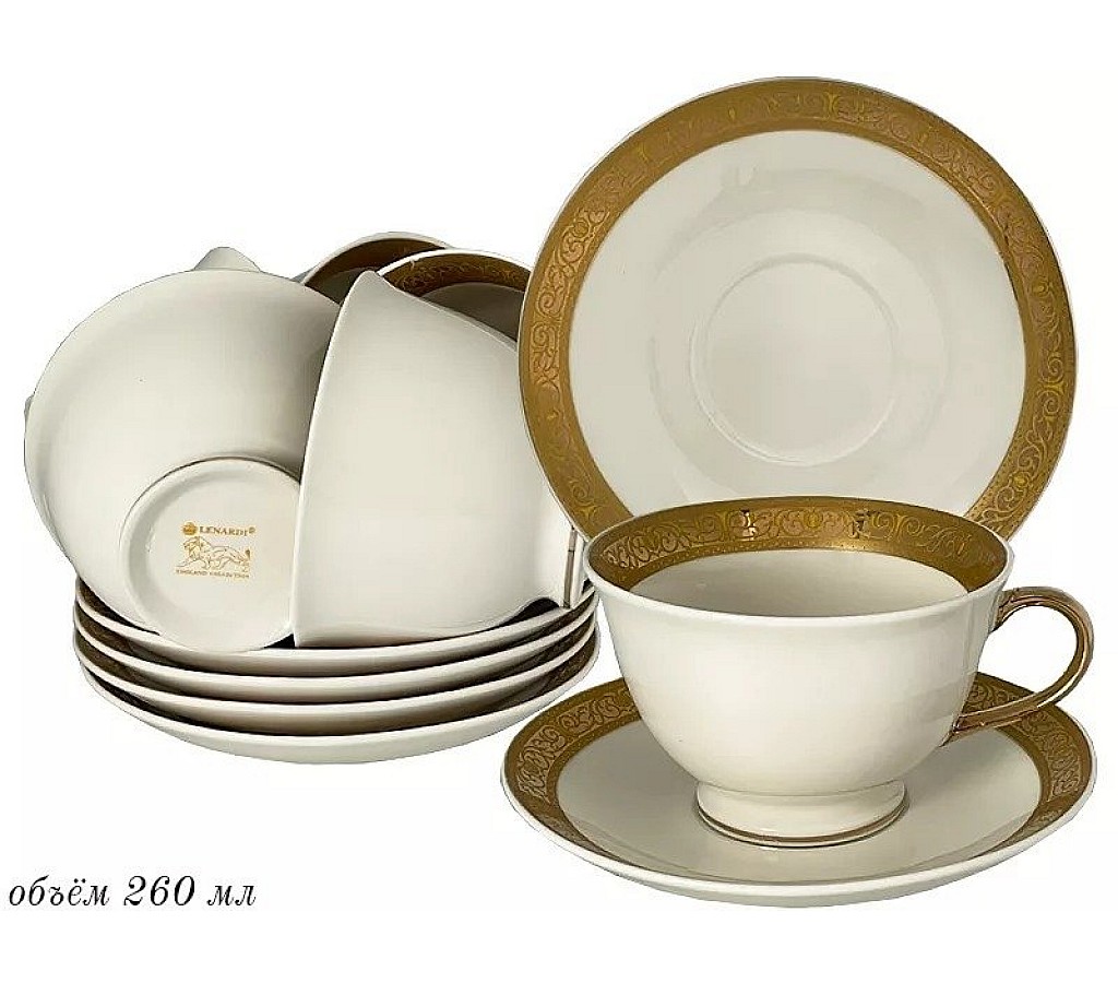 Чайный набор Lenardi Матовая полоса на 6 персон 12 предметов. Не рекомендуется мыть в посудомоечной машине и использовать в микроволновой печи. Подарочная коробка.