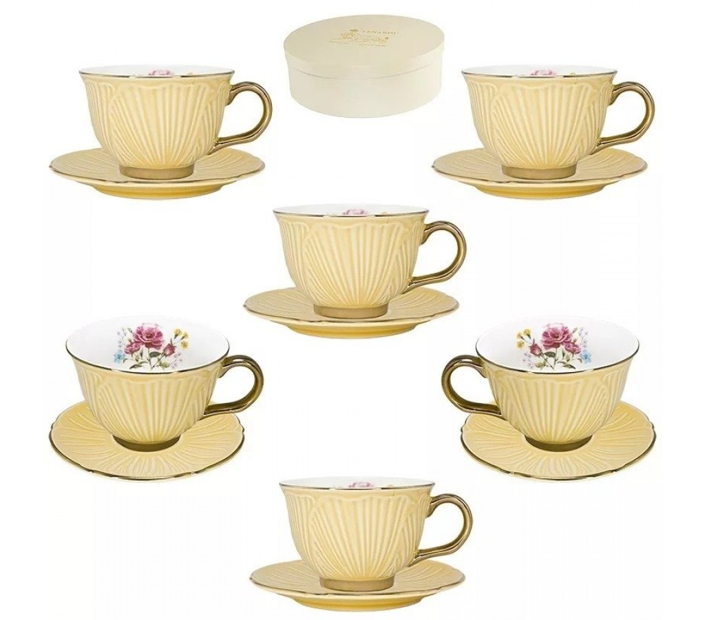 Чайный набор Lenardi Нежность бежевого цвета на 6 персон 12 предметов. Не рекомендуется мыть в посудомоечной машине и использовать в микроволновой печи. Подарочная коробка.
