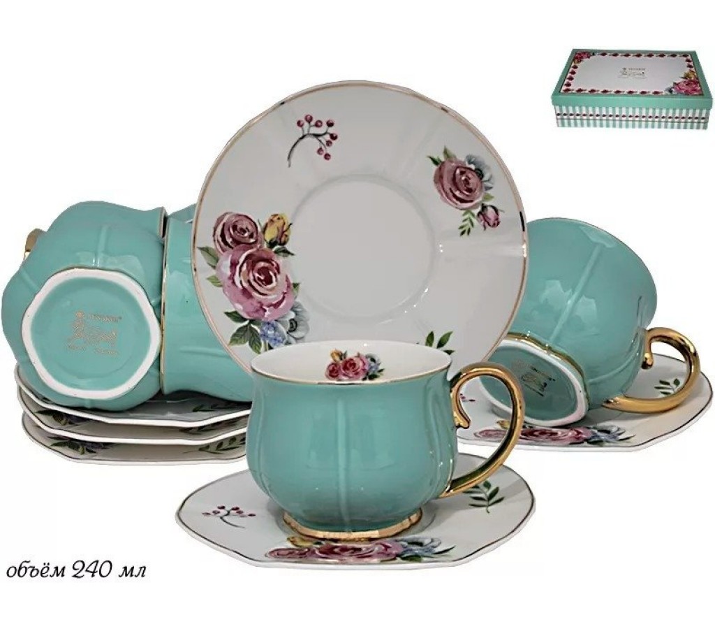 Чайный набор Lenardi Нежность голубой на 6 персон 12 предметов. Не рекомендуется мыть в посудомоечной машине и использовать в микроволновой печи. Подарочная коробка.