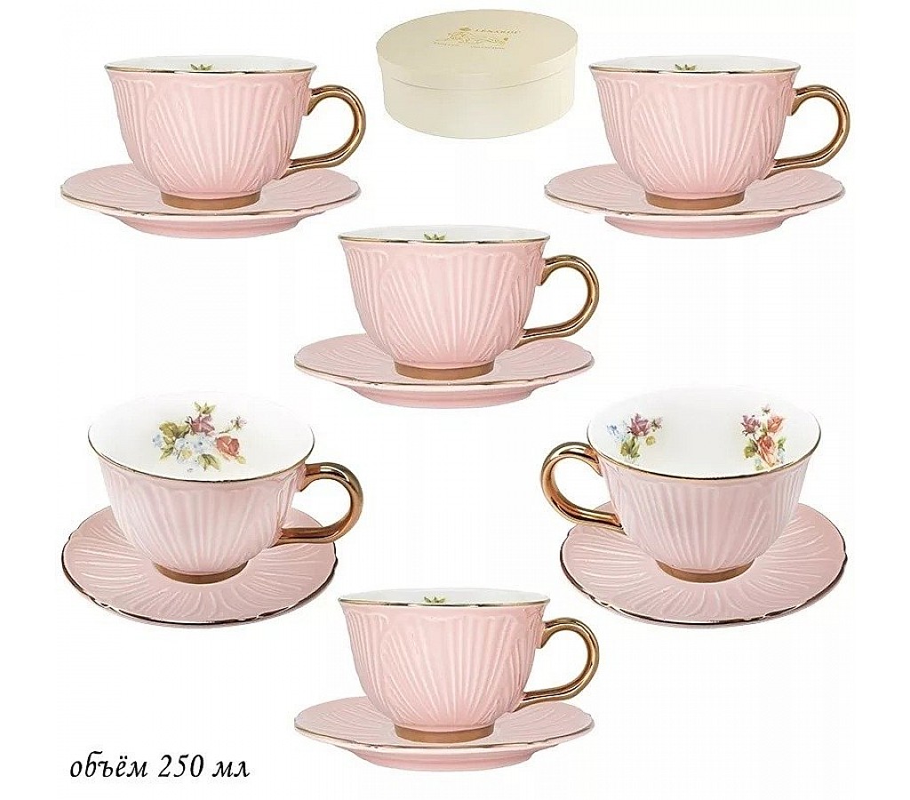 Чайный набор Lenardi Нежность розового цвета на 6 персон 12 предметов. Не рекомендуется мыть в посудомоечной машине и использовать в микроволновой печи. Подарочная коробка.
