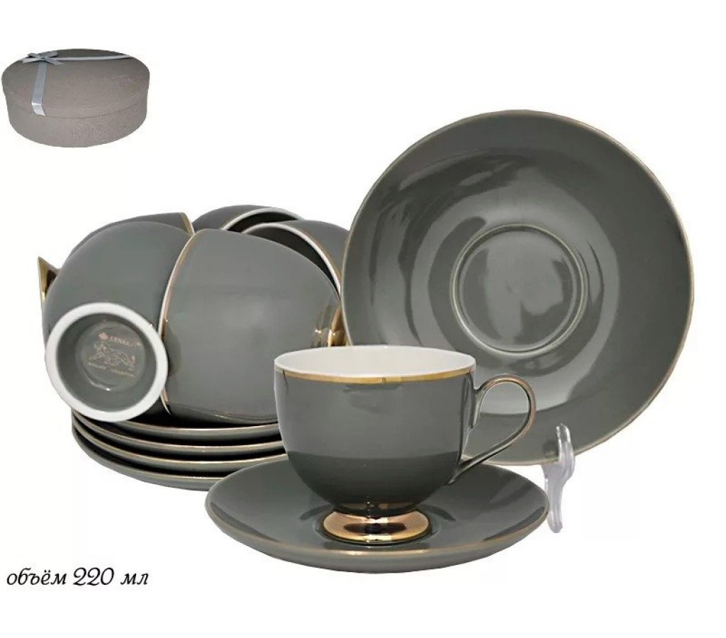 Чайный набор Lenardi Радуга серый на 6 персон 12 предметов. Подарочная коробка. Рекомендуется мыть руками. Не подходит для использования в микроволновой печи.