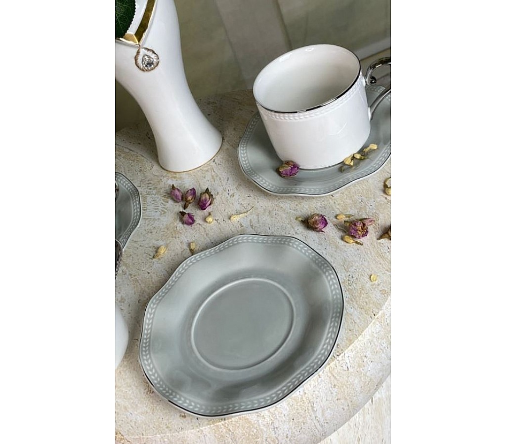 Чайный набор на 6 персон 12 предметов 370 мл Волна Lenardi серый