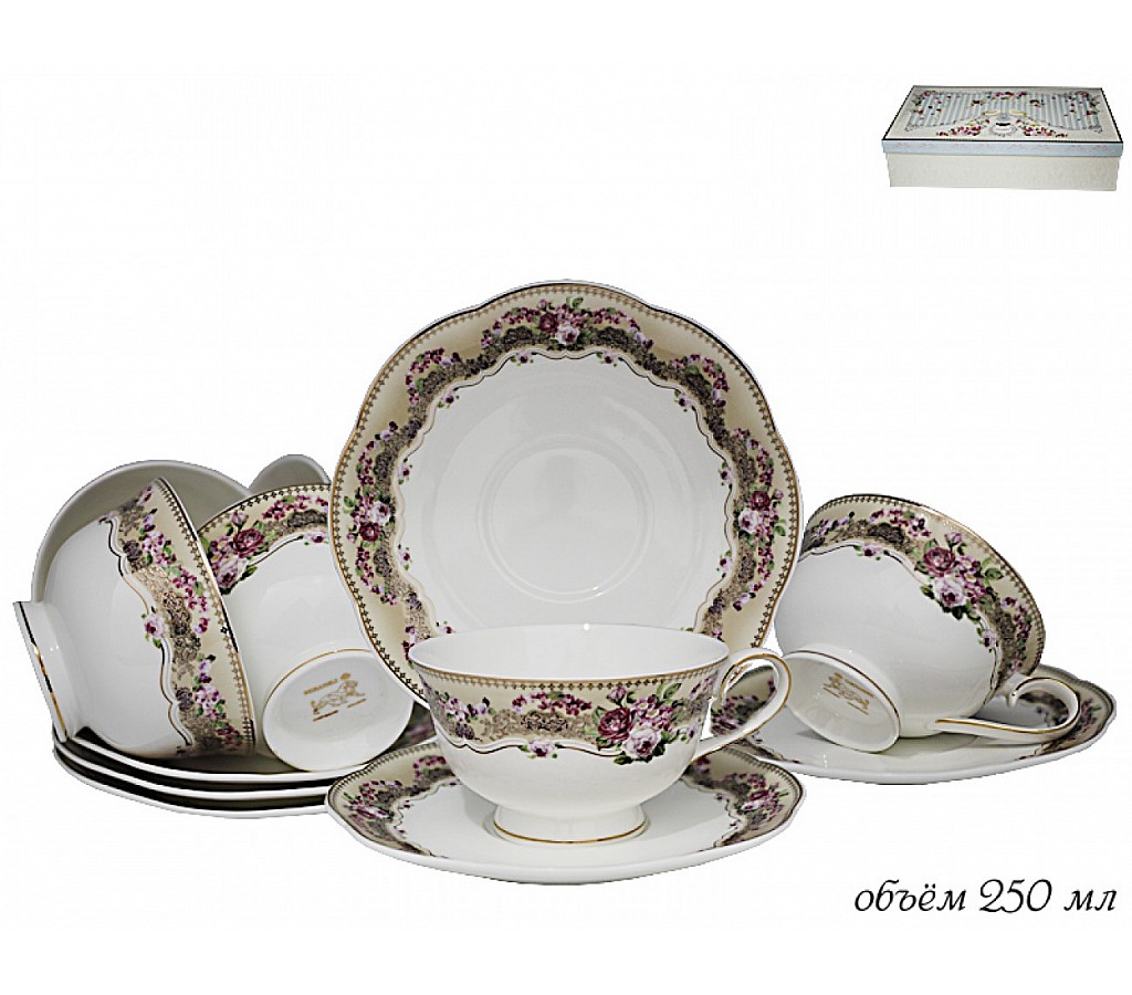 Чайный набор Селена Lenardi на 6 персон 12 предметов. В наборе 6 чашек 250 мл. 6 блюдец. Подарочная коробка. Рекомендуется мыть руками. Не использовать в микроволновой печи.