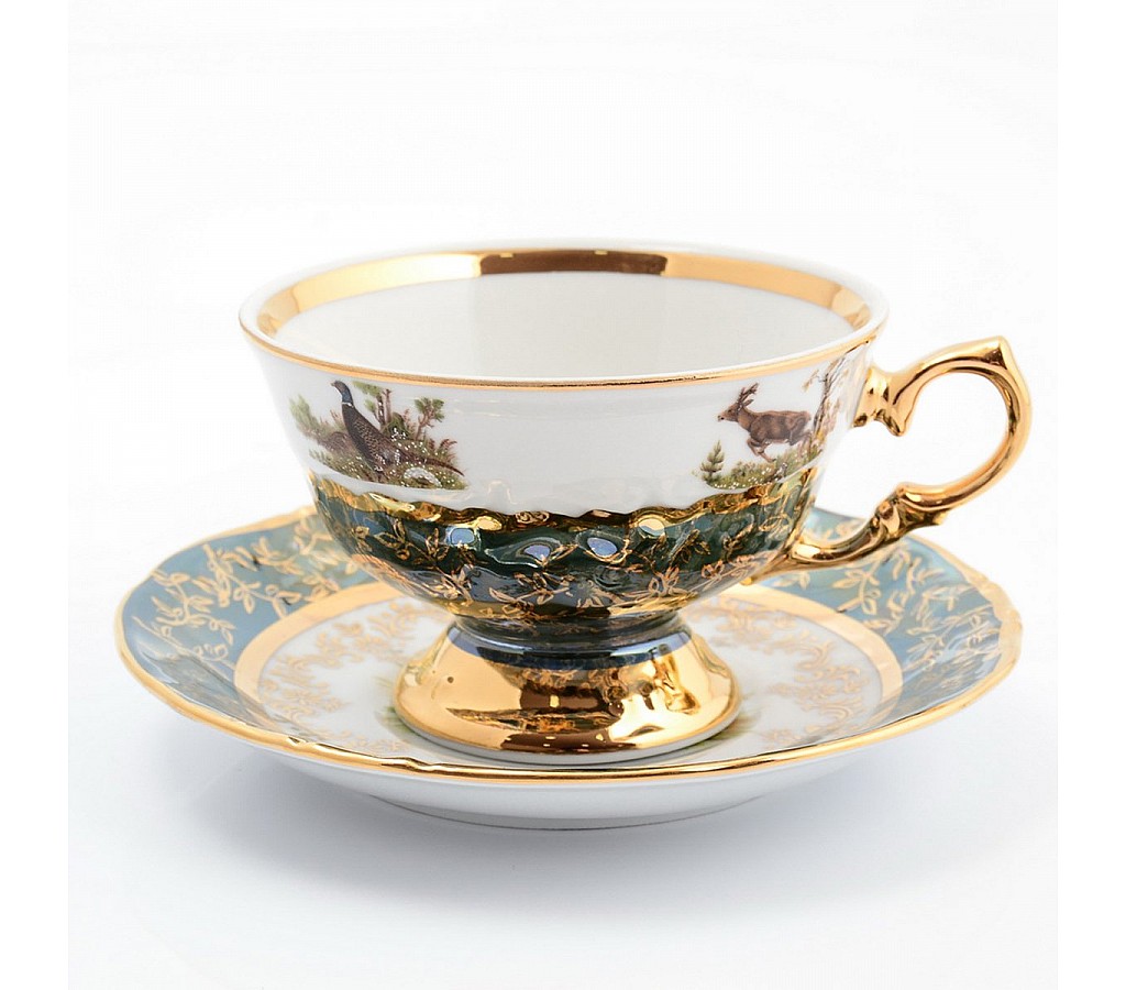 | Набор чайных пар 220 мл Охота Зеленая Sterne porcelan (6 пар) | |
