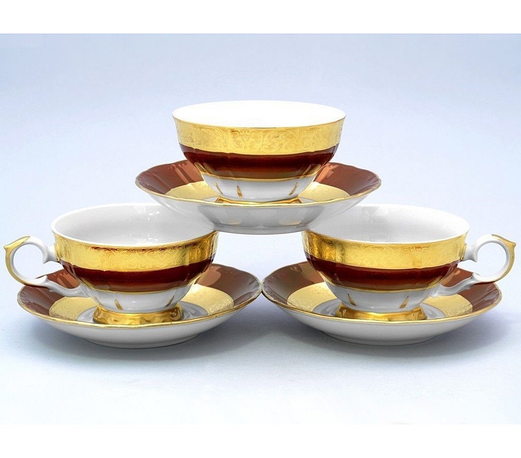 Набор чайных пар 230 мл Магнолия Золотая полоса Рубин MZ (6 пар)