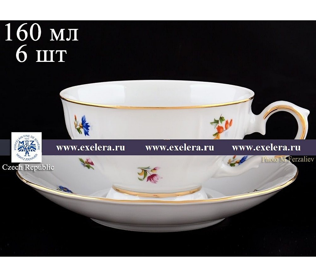 | Набор чайных пар 230 мл Офелия Мелкие цветы отводка золото MZ (6 пар) | |