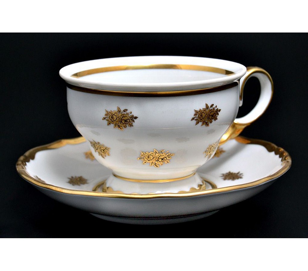 Набор чайных пар 250 мл Анжелика Золотая роза Мелкие цветы MZ (6 пар)