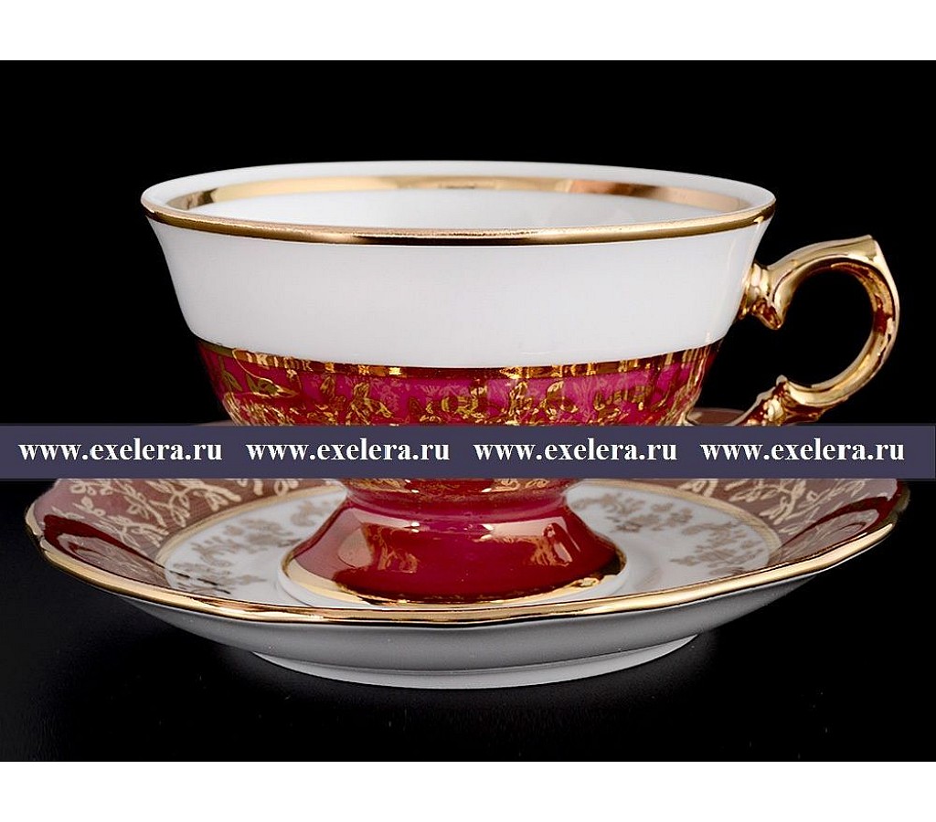 Набор чайных пар Красная паутинка Royal Czech Porcelain на 6 персон