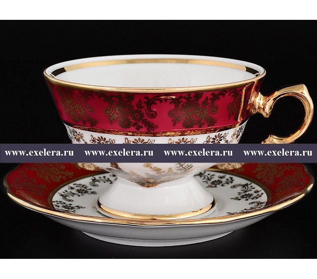 Набор чайных пар Царская Красная Охота Royal Czech Porcelain (6 пар)