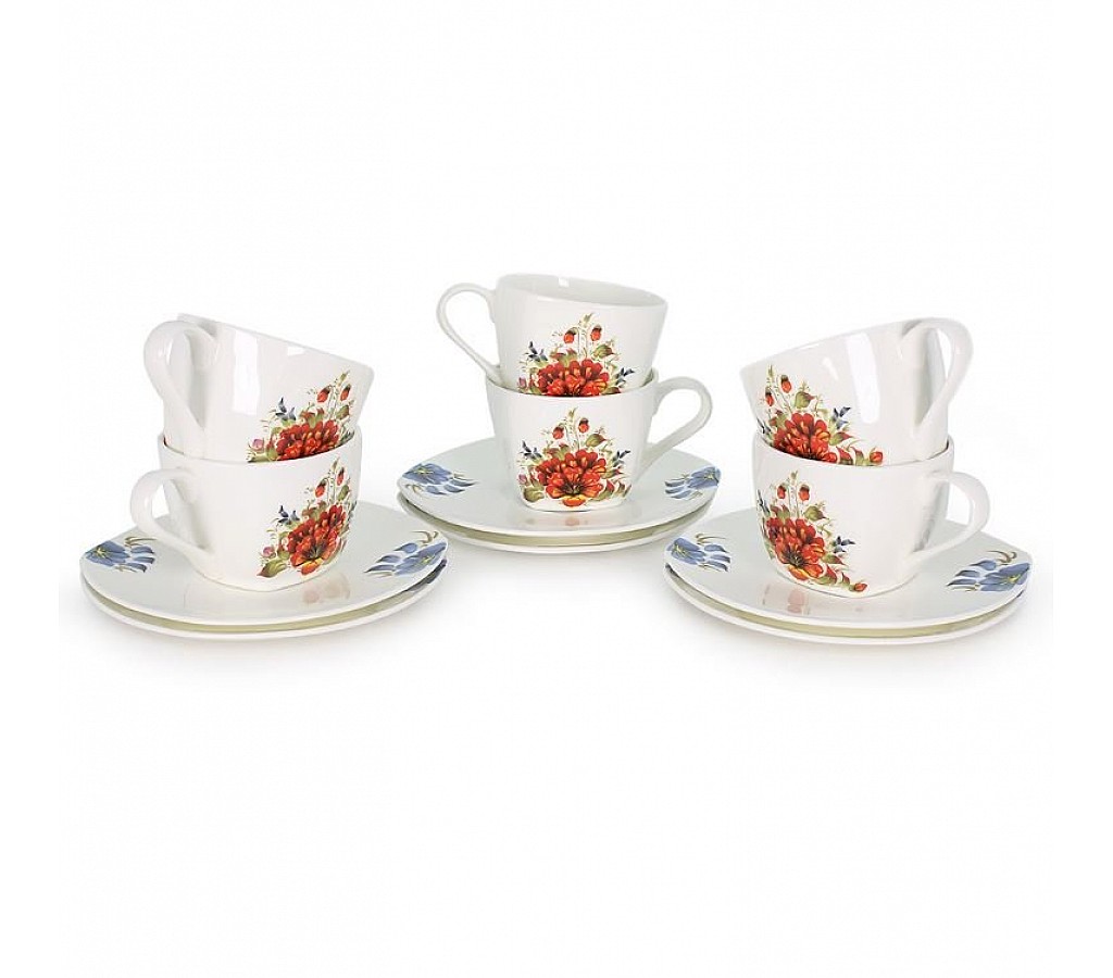 Набор чайных пар Варвара на 6 персон выполнен в стиле народного промысла. Набор упакован в подарочную коробку с тканевой подложкой. Состав: чашки 250 мл. 6 шт, блюдца квадратной формы 16 см 6 шт. Все предметы можно использовать в микроволновой печи и посудомоечной машине.