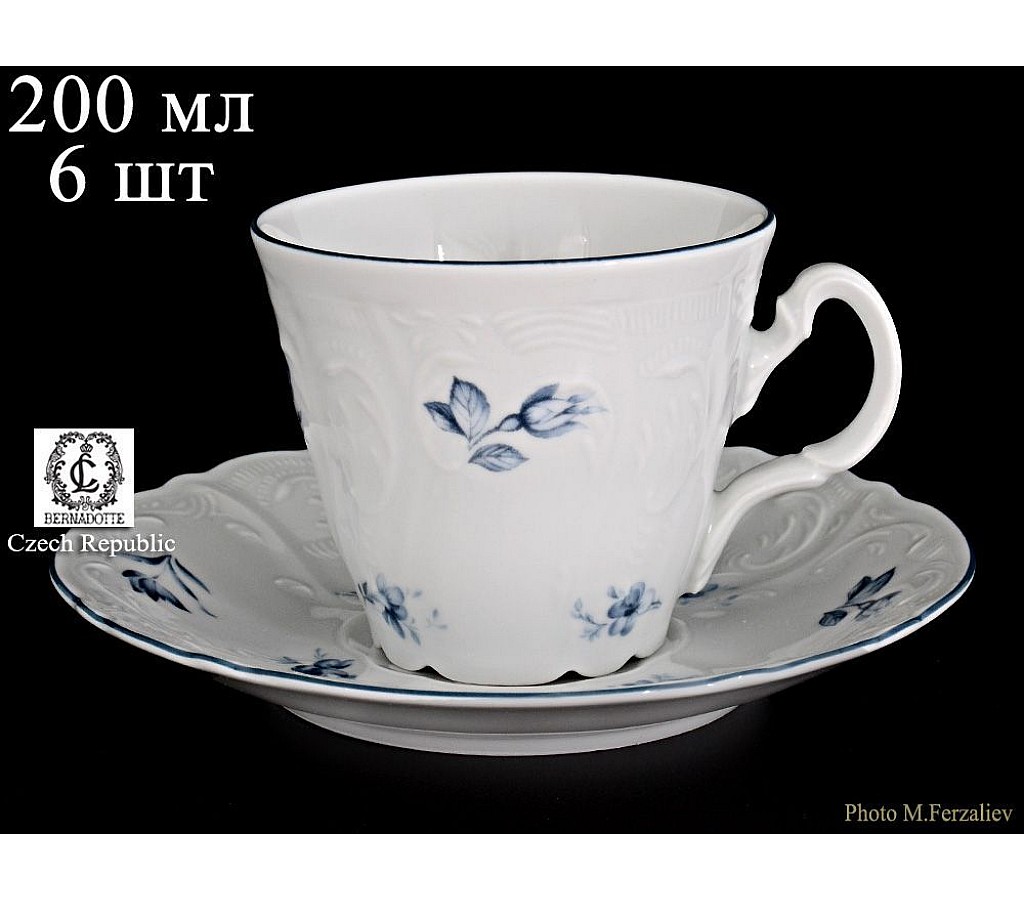 | Набор чайных пар ведерка Синий цветок Bernadotte 200 мл (6 пар) | |
