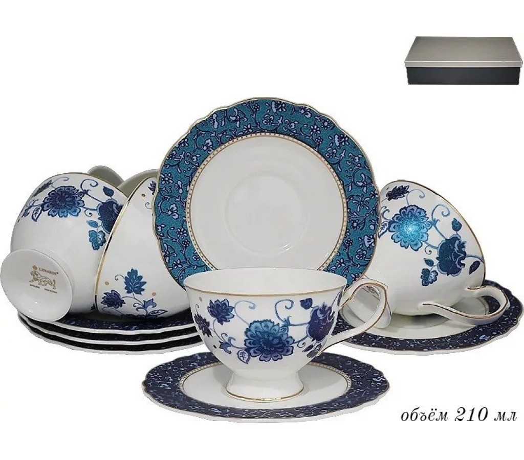 Набор чашек с блюдцами Lenardi Гжель на 6 персон 12 предметов. Не рекомендуется мыть в посудомоечной машине и использовать в микроволновой печи. Подарочная коробка.