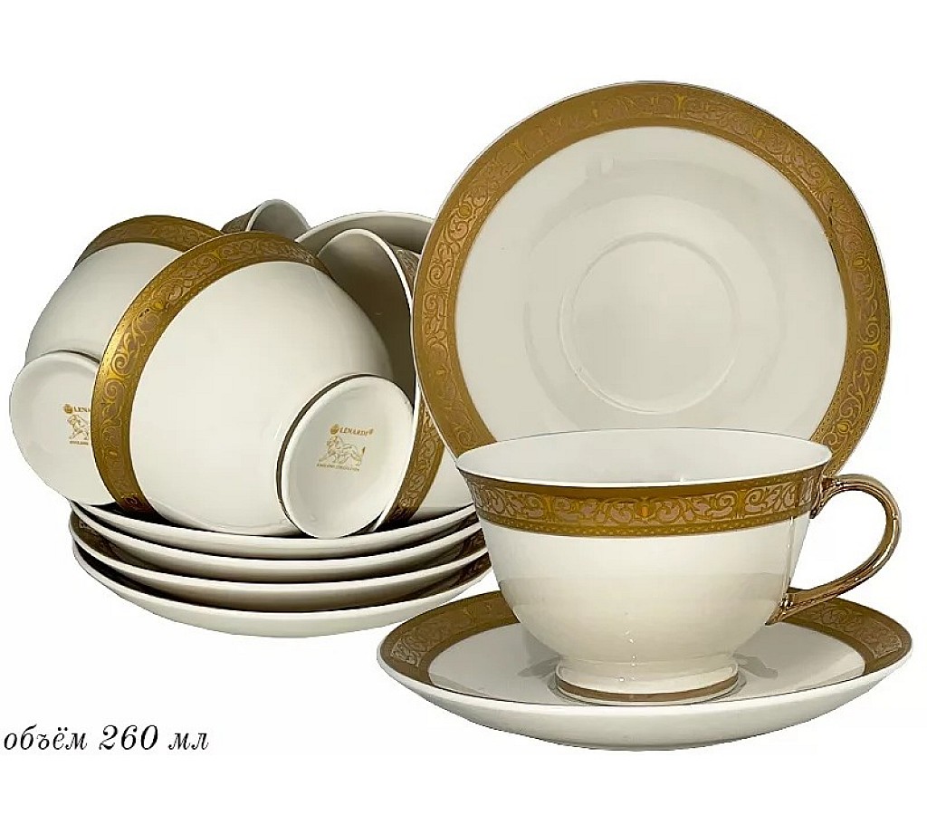 Набор чашек с блюдцами Lenardi Матовая полоса на 6 персон 12 предметов. Не рекомендуется мыть в посудомоечной машине и использовать в микроволновой печи. Подарочная коробка.