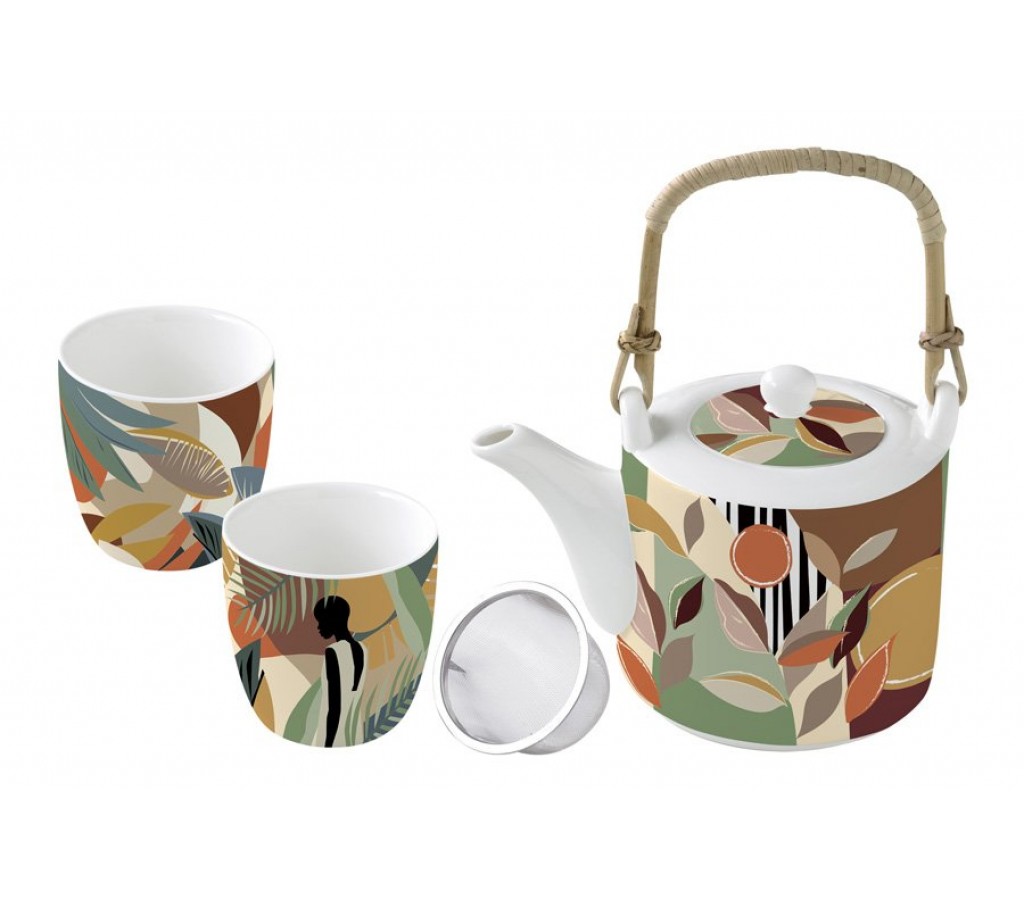 Фарфоровый набор для чая Килиманджаро от Easy Life: чайник объемом 0,6 л, 2 чашки 0,16 л.Мыть теплой водой с применением ЖМС. Можно использовать в СВЧ и посудомоечной машине.