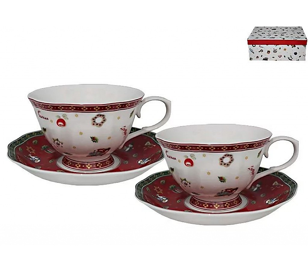 - Набор две чашки и два блюдца 250 мл Новогодний Lenardi
