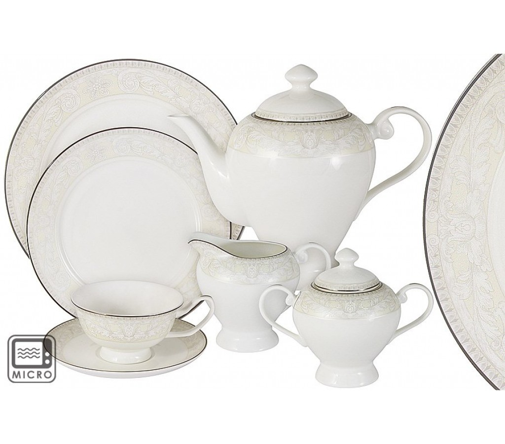 Чайный сервиз Белгравия 40 предметов на 12 персон 12 чашек 0,175л, 12 блюдец, 12 тарелок 21см, чайник 1,2л, сахарница 0,35л, молочник 0,35л, блюдо для торта 31см