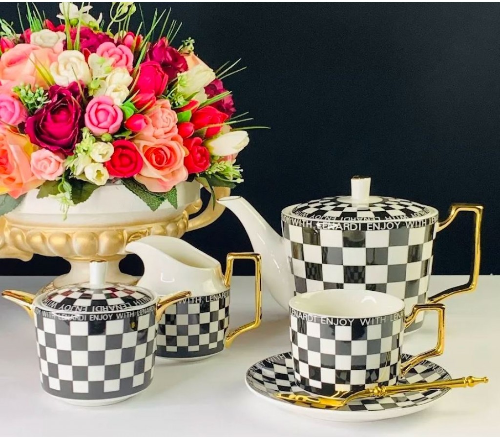 Чайный сервиз Enjoy Lenardi на 6 персон 15 предметов -отличное решение для сервировки чаепития. Лаконичный, контрастный декор сервиза будет удачно гармонировать с праздничным столом. Сервиз упакован в подарочную коробку.