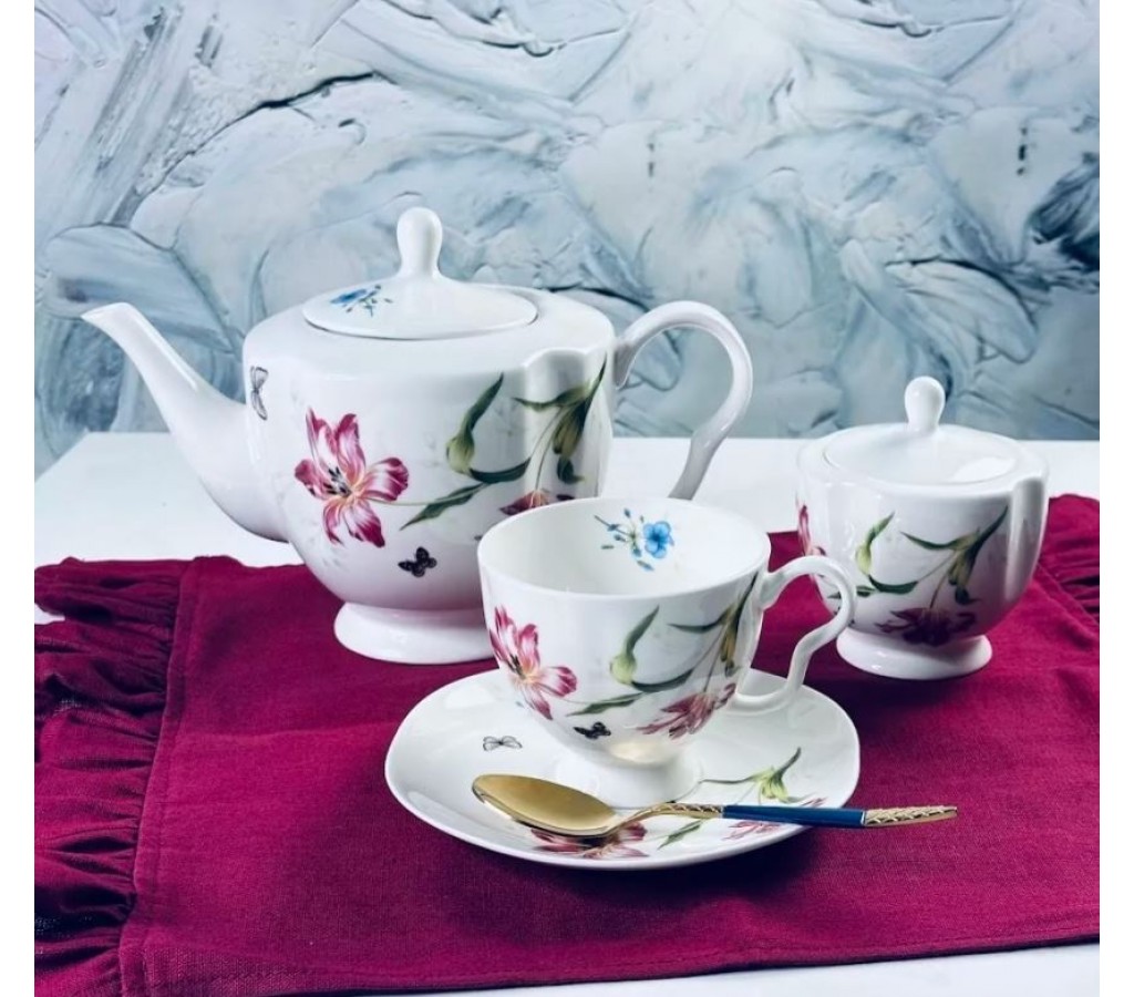 Коллекция фарфоровой посуды Flowers невероятно универсальна. Цветочные принты создают вневременное и романтическое очарование, которое нравится людям всех возрастов. Красота природы, запечатленная на фарфоре, добавляет элемент изысканности любому обеду. Посуду можно использовать для повседневного ужина, особых случаев или в качестве декоративного предмета. Посуда очень практична, пригодна для мытья в посудомоечной машине и использования в СВЧ печи, что делает ее незаменимой в домашнем хозяйстве. Сервизы и наборы упакованы в подарочные коробки.Комплектация чайного сервиза: