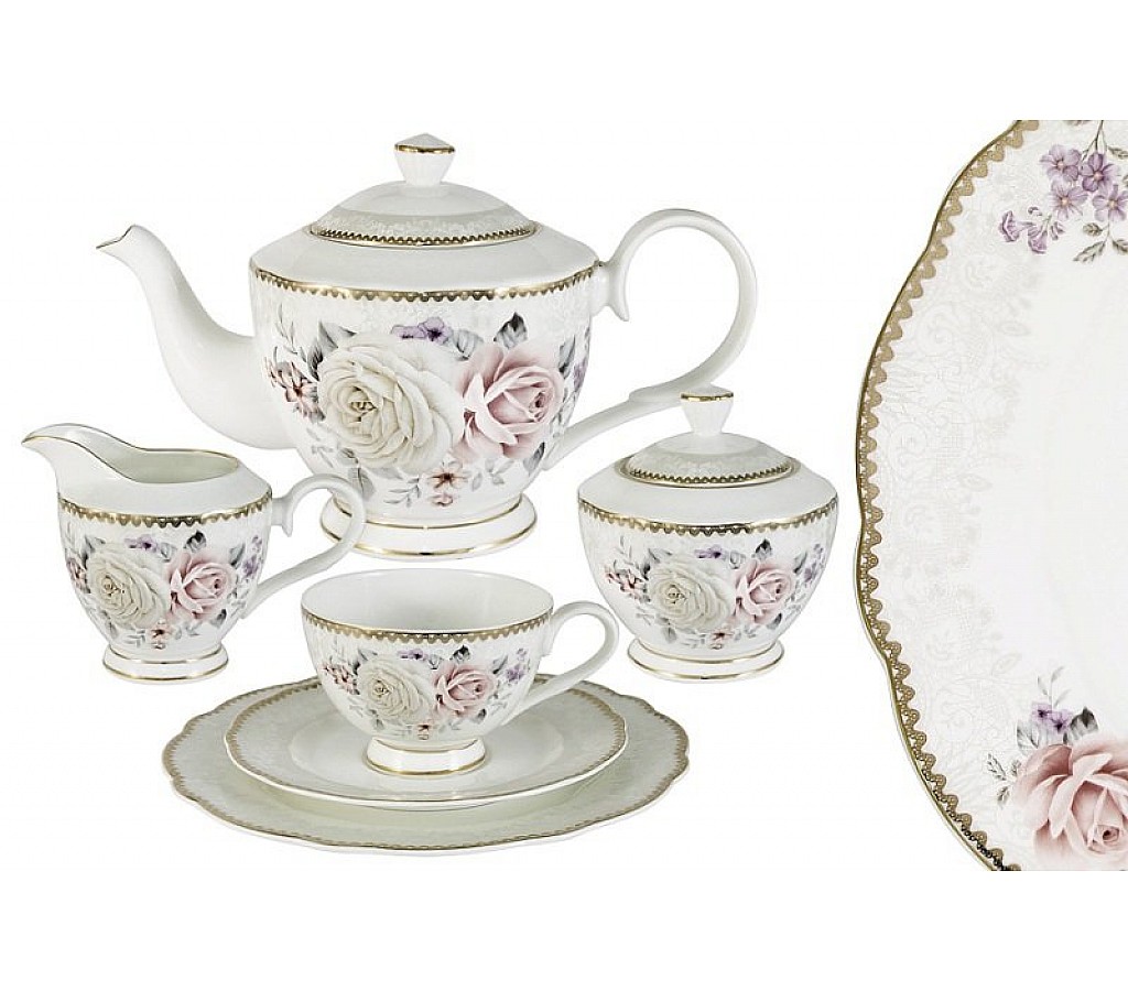 Чайный сервиз Гармония 21 предмет на 6 персон 6 чашек 0,2л, 6 блюдец, 6 тарелок 20см, чайник 1,0л, сахарница 0,3л, молочник 0,25л
