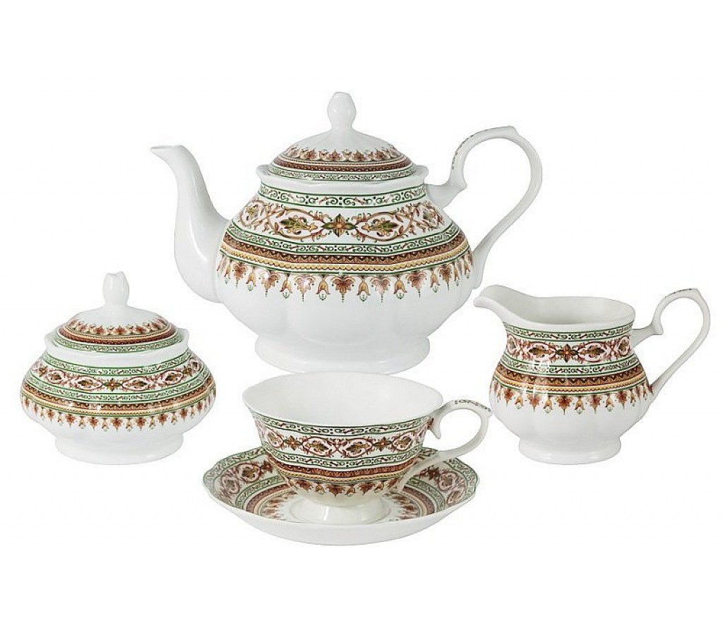 Чайный сервиз из 15 предметов на 6 персон Надин 6 чашек 0,25л, 6 блюдец, чайник 1.3л, сахарница 0,25л, молочник 0,25л