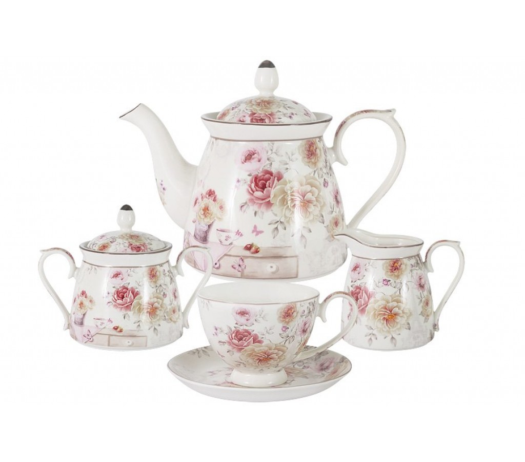 Чайный сервиз из 15 предметов на 6 персон Нежность от Anna Lafarg Primavera в подарочной упаковке. Размер: 6 чашек 0.25л, 6 блюдец, чайник 1.0л, сахарница 0.3л, молочник 0.25л. Рекомендуется мыть в ручную. Не подходит для использования в микроволновой печи.
