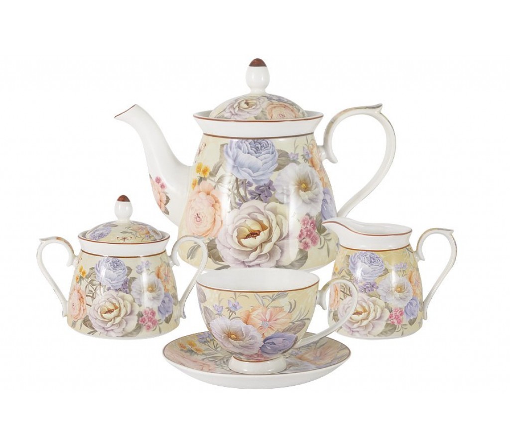 Чайный сервиз из 15 предметов на 6 персон Цветочный вальс от известного бренда Anna Lafarg Primavera упакован в подарочную коробку. Состав сервиза: 6 чашек 0.25л, 6 блюдец, чайник 1.0л, сахарница 0.3л, молочник 0.25л. Не подходит для посудомоечной машины и микроволновой печи.