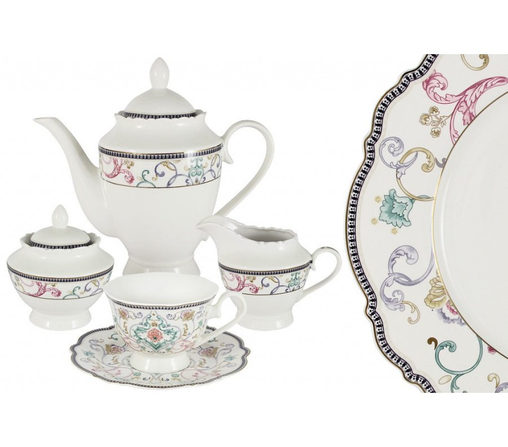 Чайный сервиз из 15 предметов на 6 персон Узор в подарочной упаковке: 6 чашек 0.2л, 6 блюдец, чайник 1.0л, сахарница 0.3л, молочник 0.25л