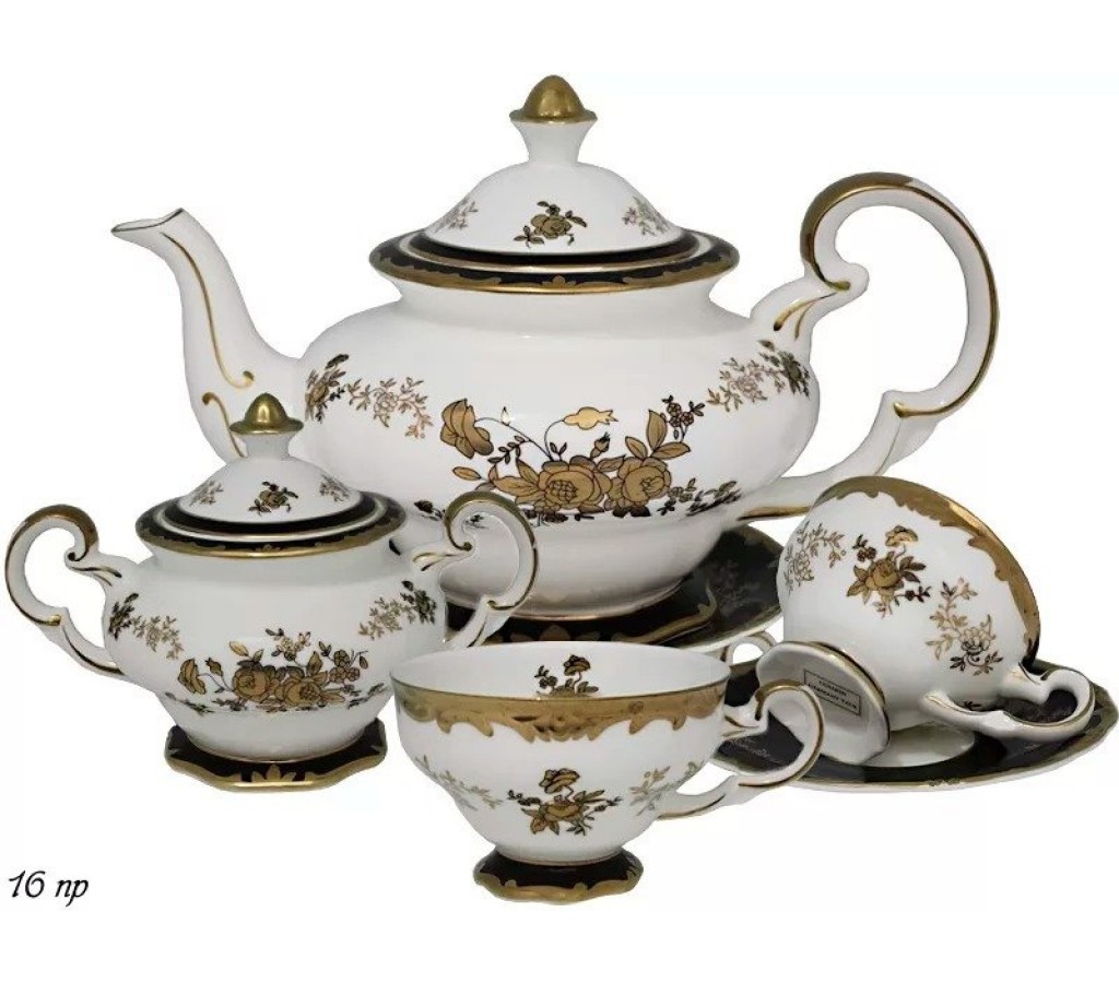 Чайный сервиз Анна Амалия на 6 персон 16 предметов из фарфора. Упакован в брендированную белую глянцевую коробку. Не рекомендуется использовать в микроволновой печи и мыть в посудомоечной машине, по причине возможного повреждения золотого декоративного покрытия.